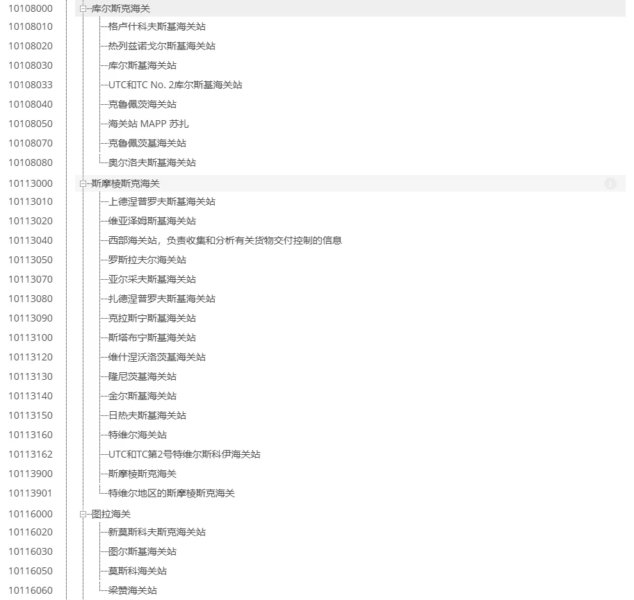 当物货到达俄罗斯海关监管区后,进口商需要在清关地点进行进口申报,以下是俄罗斯法定清关地点海关代码和海关部门通关站点,分享给大家