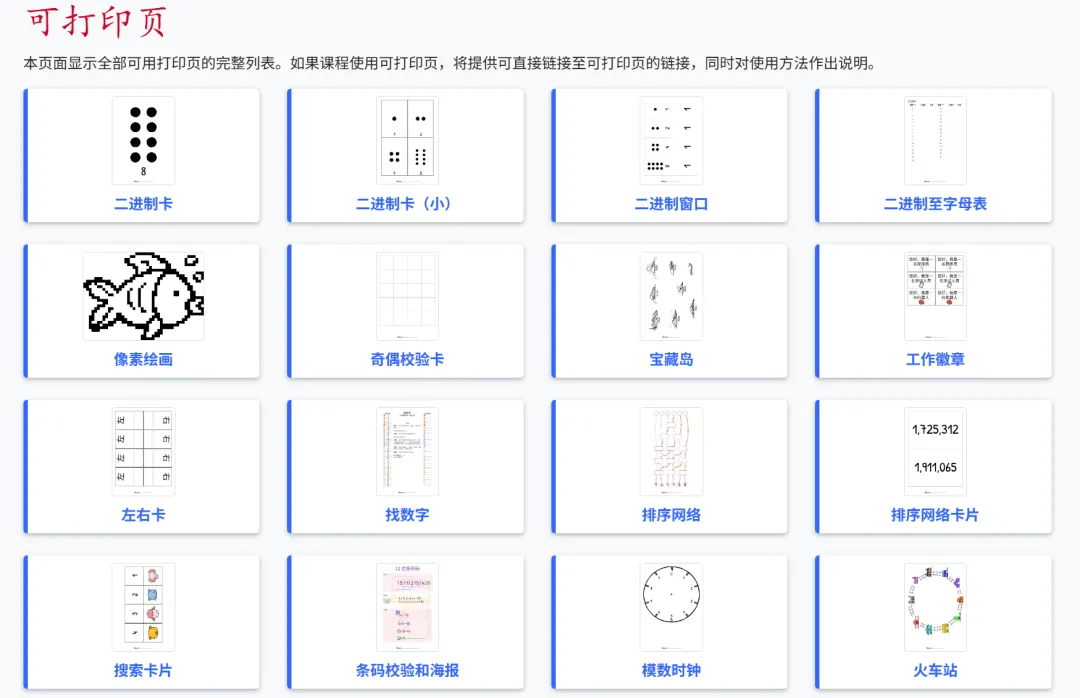 其实,CS Unplugged(不插电计算) 官方开发了一整套超级详尽的教学体系,里面包含了30+个经典思维游戏,涵盖了从“二进制秘密”到“图像压缩原理”的所有核心知识。