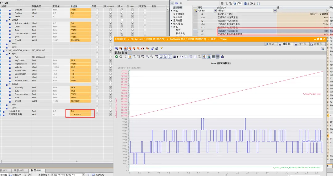 r31(已滤波的转矩实际值),避免只看 PLC 变量、忽略驱动器实际输出。