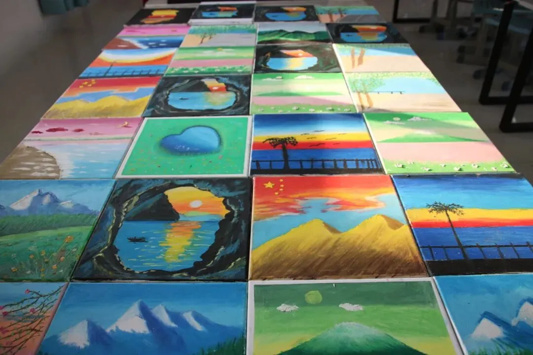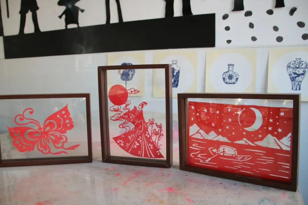 美术类社团联袂展示传统文化魅力:非遗创意画社团以童真笔触解读古老技艺,书法社团尽显汉字风骨与童心雅趣,中国画社团在水墨中探寻传统美学,剪纸社团于方寸间迸发创意,国粹青花社团充满创意和生机。