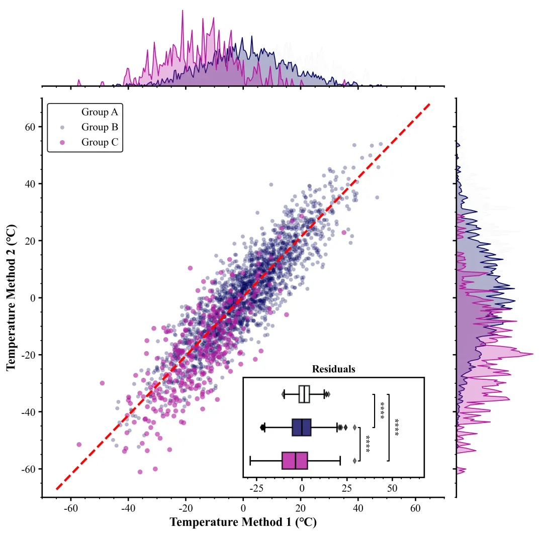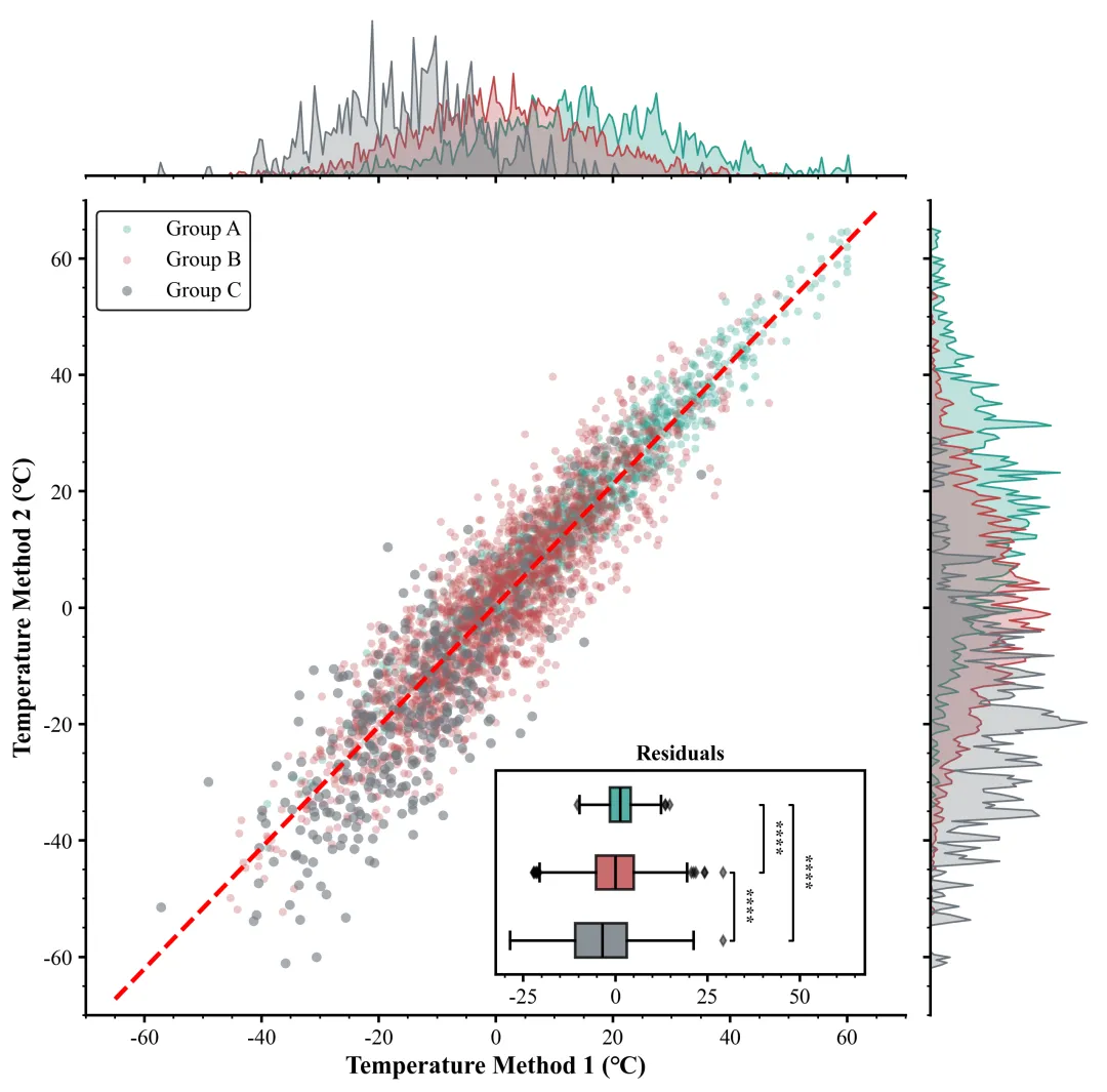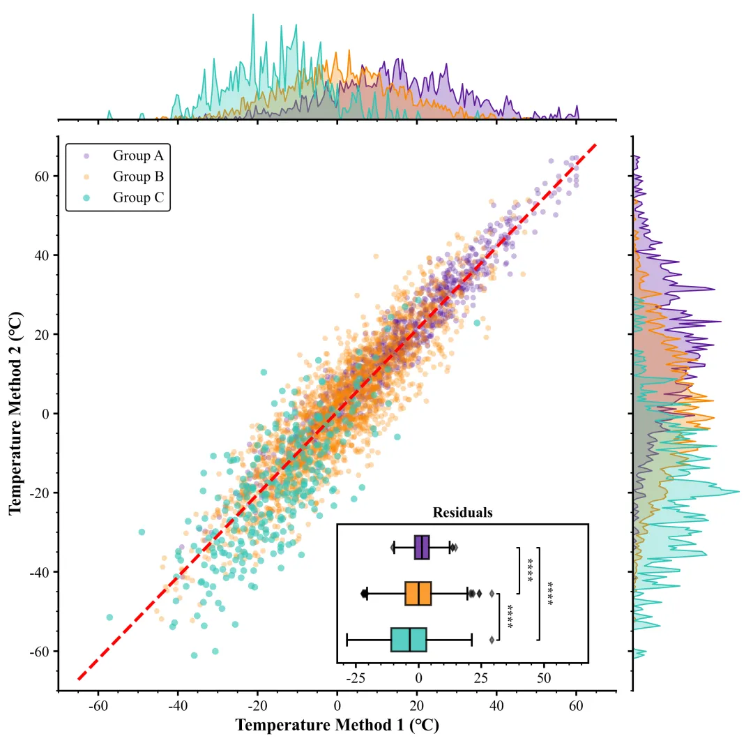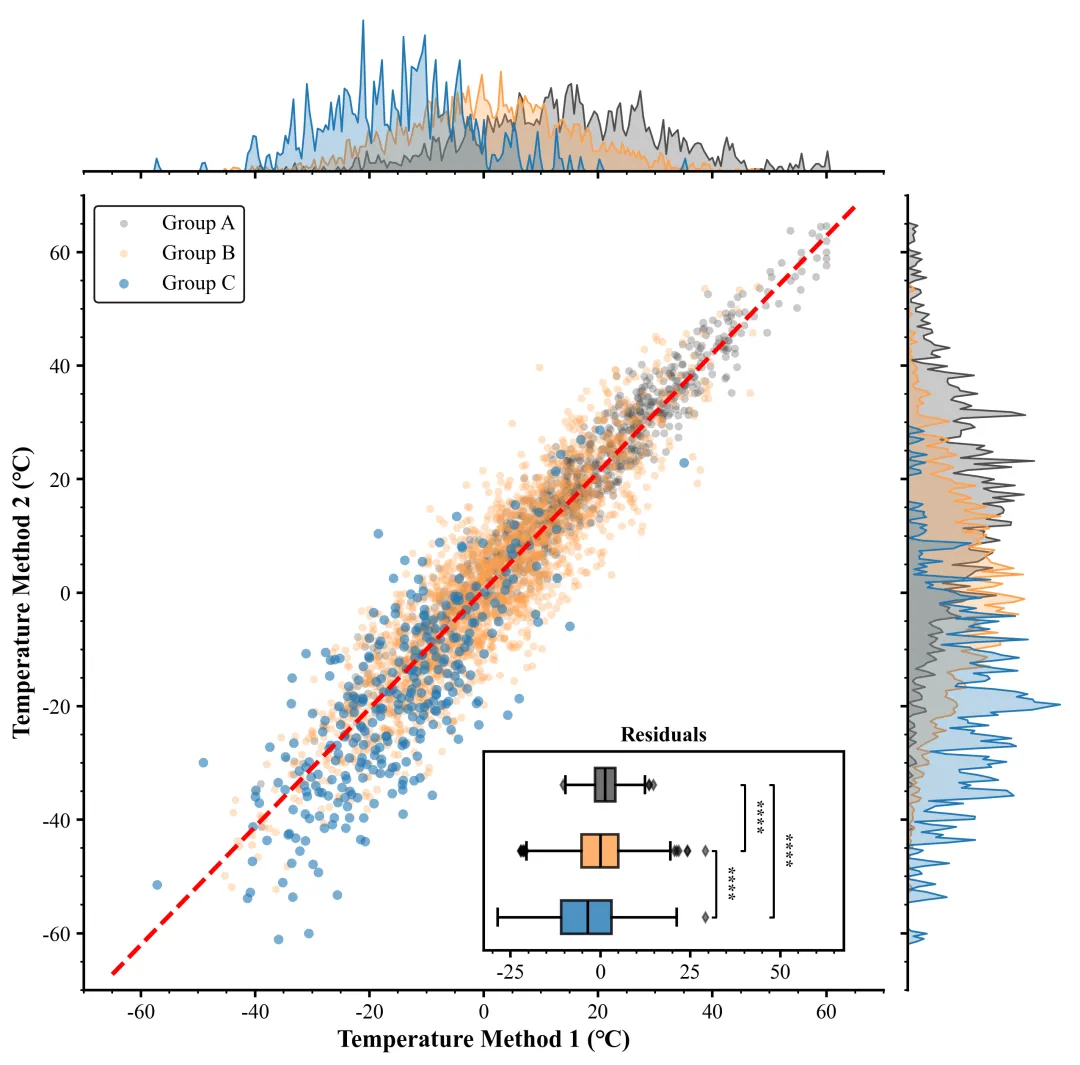 #添加C和B的显著性标记add_sig(ax_inset,resid_c, resid_b, 1, 2, 1)#添加B和A的显著性标记add_sig(ax_inset,resid_b,resid_a, 2,3,2)#添加C和A的显著性标记add_sig(ax_inset, resid_c,resid_a,1,3,3)curr_xlim = ax_inset.get_xlim() # 获取当前嵌入图X轴范围#设置范围ax_inset.set_xlim(curr_xlim[0], curr_xlim[1] * 1.3)# 收集所有坐标轴对象all_axes = [ax_main,ax_top,ax_right,ax_inset]ax.minorticks_on() # 开启次刻度#保存plt.savefig(fr"{scheme_index}.png", dpi=300, bbox_inches='tight')plt.savefig(fr"{scheme_index}.pdf", bbox_inches='tight')