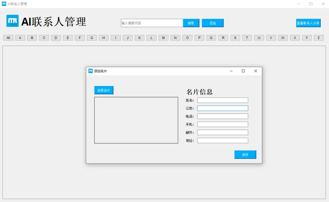 系统将自动识别该名片中的信息,并且显示到右侧的文本框中。如果没有名片也可手动输入联系人信息。
