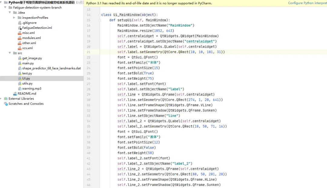 以地铁 ACC(地铁自动售检票系统清分中心简称)系统的用户行程数据、站点 数据为基础,完成基于地铁出行行程大数据的分析建模和算法研究,实现对地铁 的线路级别以及站点级别的客流进行分析和预测。11.Python基于驾驶员面部特征的疲劳检测系统源码