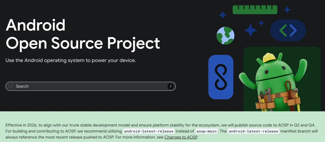 谷歌发布了关于 Android 开源代码的最新调整:仅将在每年的第二季度和第四季度向 AOSP 发布 Android 源代码。
