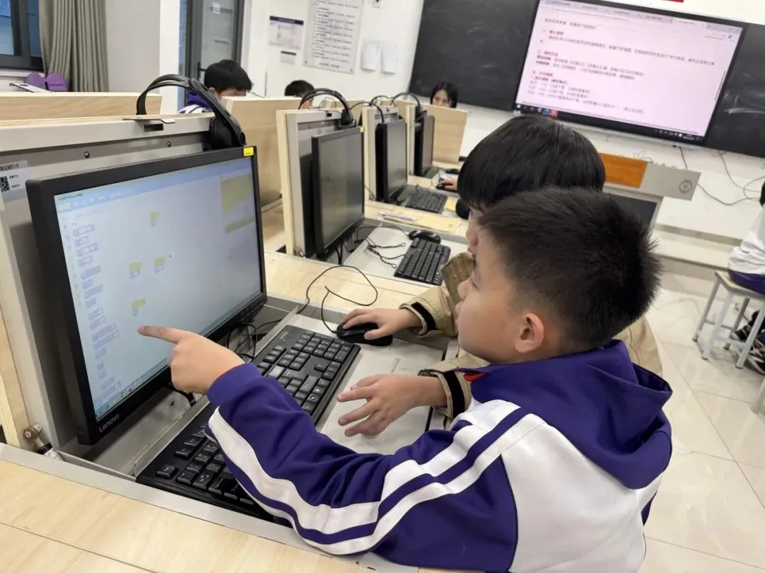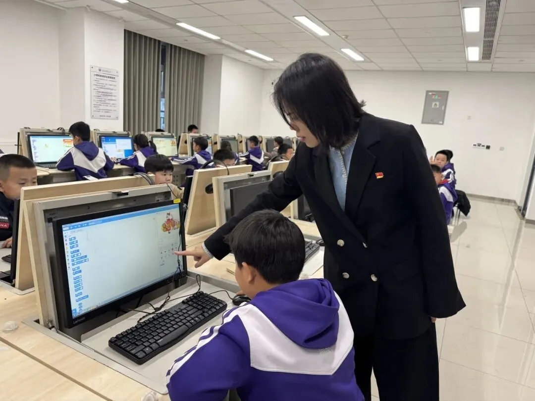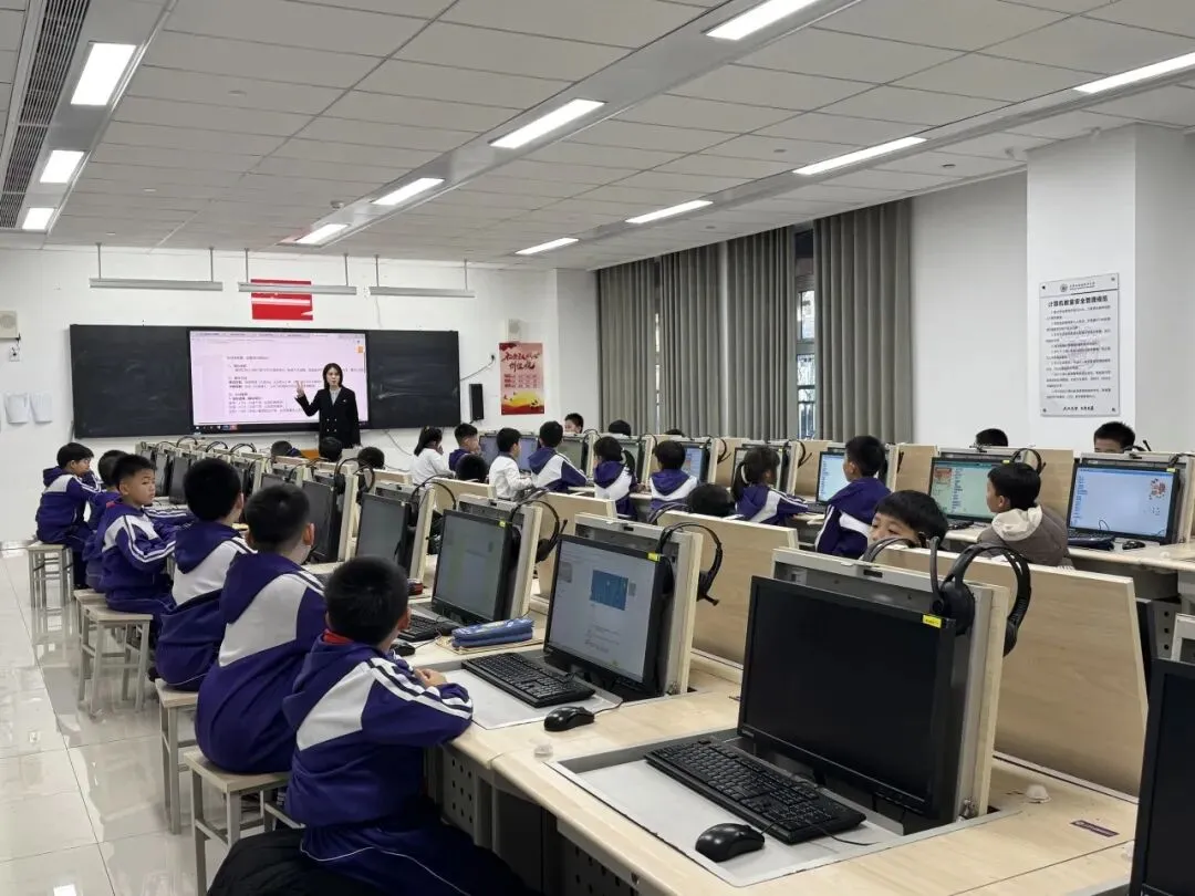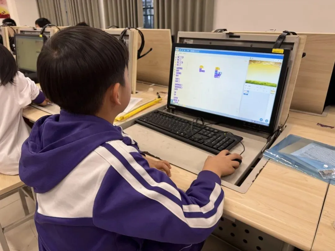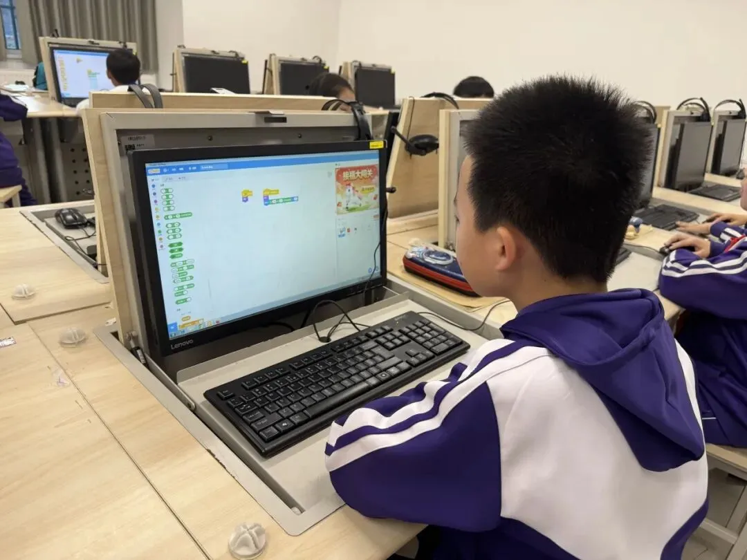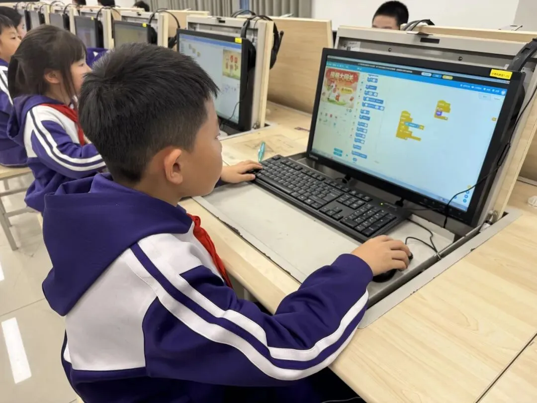 课堂上,孩子们化身“小小程序员”,专注投入的眼神里满是对知识的渴望。从认识编程积木、理解指令逻辑,到自主设计简单动画、编写趣味小游戏,老师们循序渐进地引导,耐心细致地解答,让复杂的编程概念变得通俗易懂。“老师,我的角色动起来啦!”“我成功设置关卡了!”课堂上不时响起同学们的欢呼,每一次成功的尝试,都让他们收获满满的成就感。
