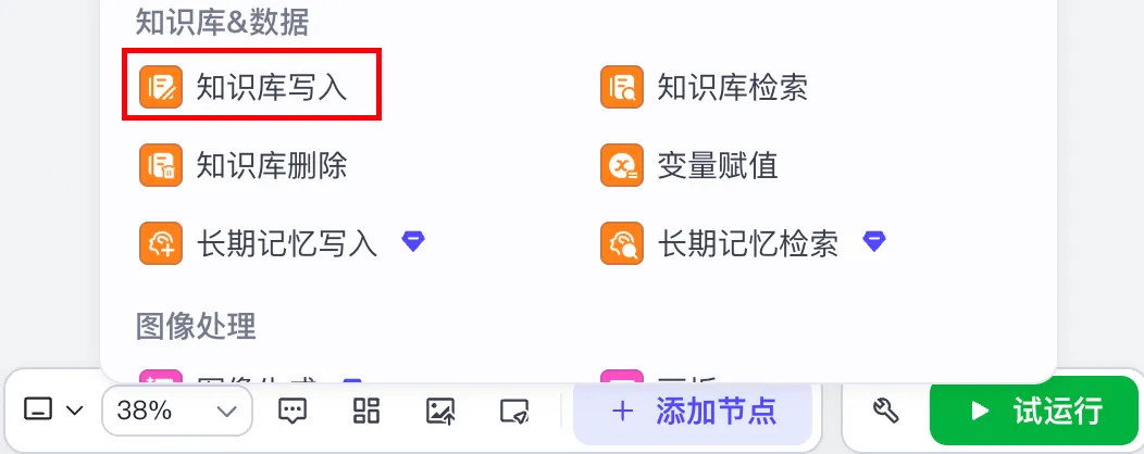 “知识库写入” 节点的价值就是零代码、轻量导入: