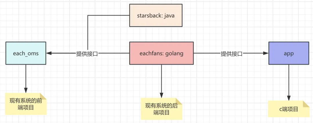 ☁ 项目迁移 tree -L 1 -d.├── each-oms-main:老项目├── each_hwd:新项目├── eachfans-main:老项目└── starsback-manager-master:老项目