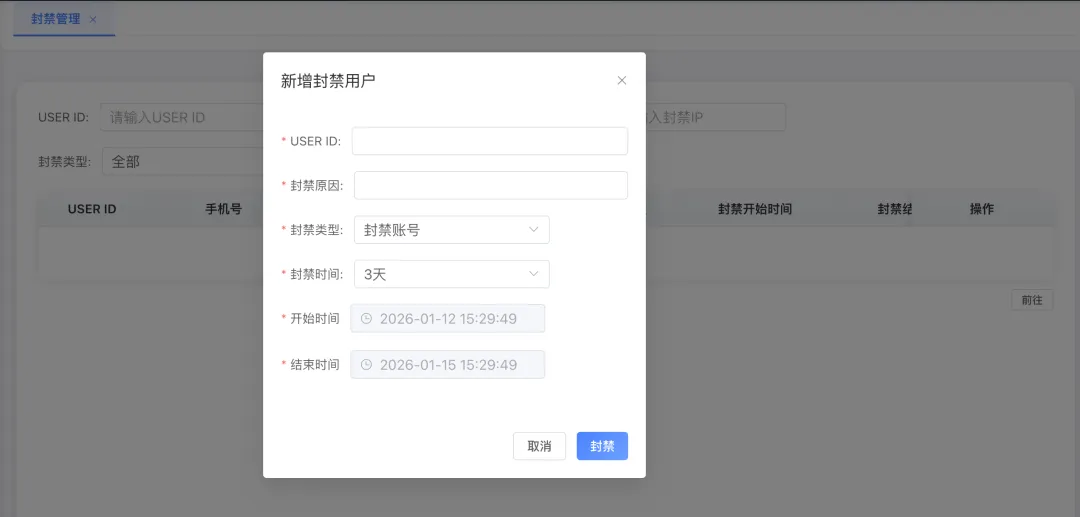 本次示例我们将展示一下 codex 如何帮助我们完成“封禁管理”功能的迁移。