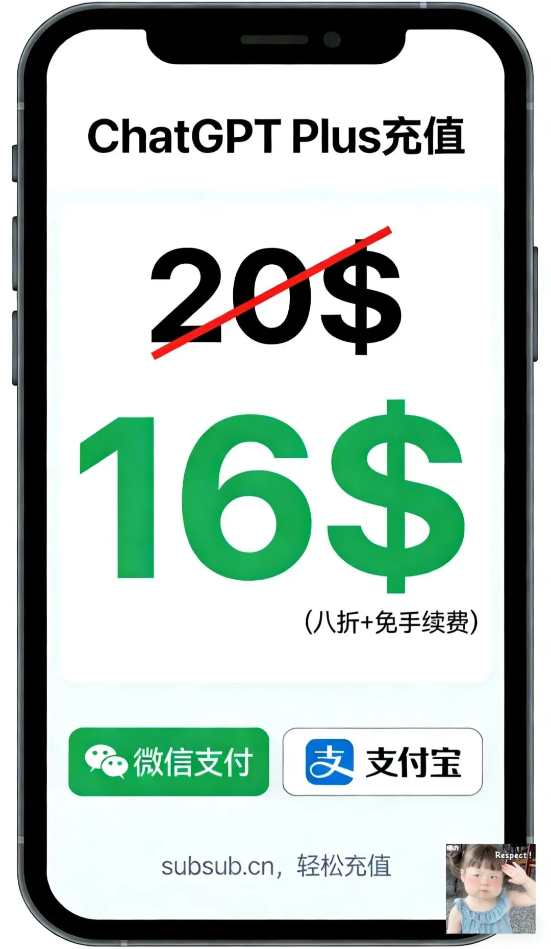 那 subsub.cn 提供的 ChatGPT Plus 个人月卡升级,会是一个更低门槛的选择。优惠阶段只需16美元。
