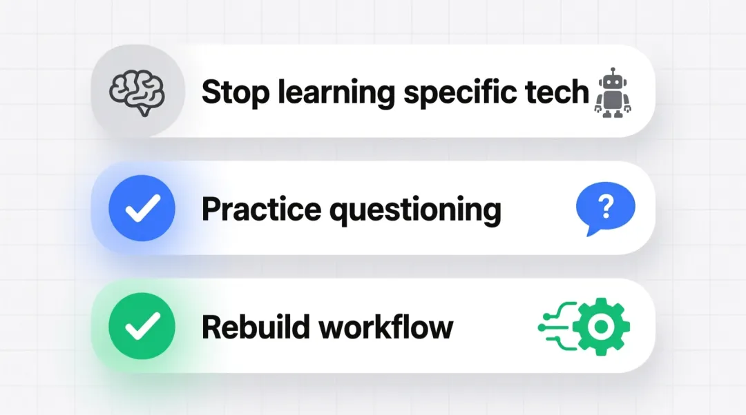 当AI给你三个解决方案时,你能判断哪个最优。当需求模糊时,你能澄清需求。当技术选型时,你能做出正确选择。