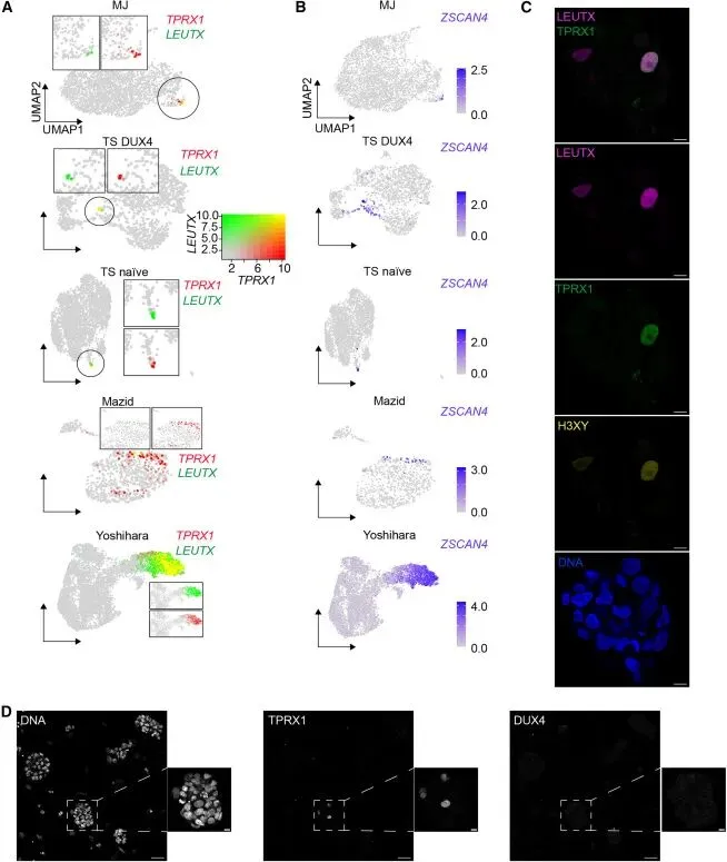 图3:在蛋白水平上证实了TPRX1、H3X/Y和LEUTX在8CLCs中的共表达。