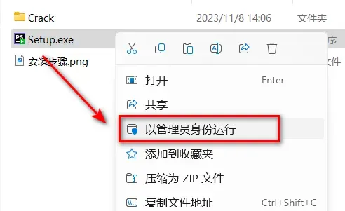 2.选中Setup,鼠标右键选择“以管理员身份运行”