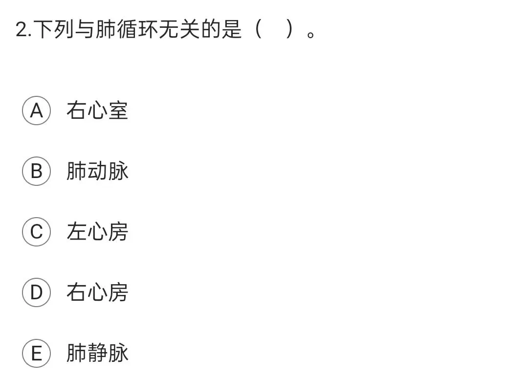 肺动脉起于右心室,在主动脉弓下方分为左、右肺动脉,经肺门入肺分支,在肺泡壁的周围形成稠密的毛细血管网。右心室收缩时,将体循环回流的血液泵入肺动脉,经肺动脉的各级分支到达肺泡周围的毛细血管网,通过毛细血管壁和肺泡壁与肺泡内的空气进行气体交换,使血液变为富含氧气的动脉血。肺泡内毛细血管逐级汇成肺小静脉、大静脉,最后,左、右肺各汇成两条肺静脉,将经过气体交换的血液经肺静脉回流于左心房。D项,右心房参与体循环,与肺循环无关。