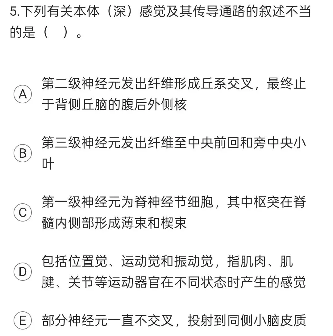 第3级神经元位于腹后外侧核,发纤维至中央后回和旁中央小叶,部分纤维投射到中央前回。有部分本体感觉一直不交叉,投射到同侧小脑皮质。