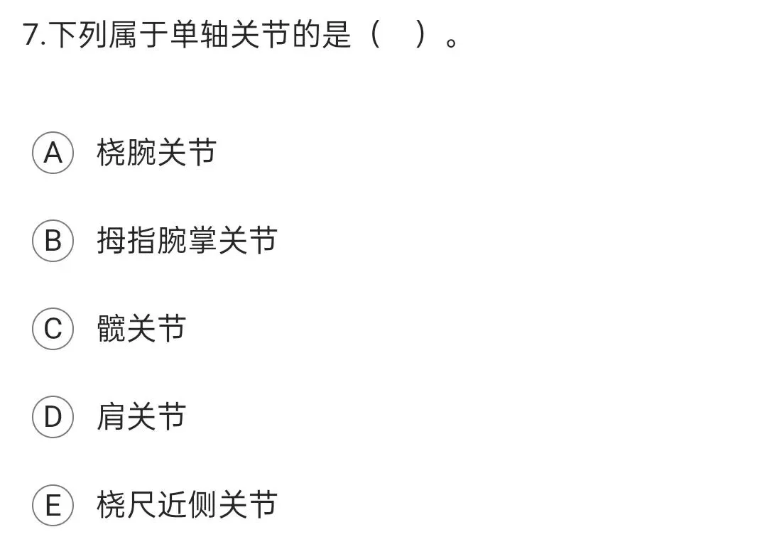 单轴关节是指关节只有一个运动轴,关节仅能围绕此轴做与之垂直的运动(即一个平面的运动)。单轴关节包括屈戌关节和车轴关节。