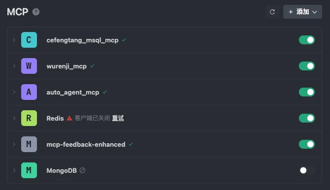集成适配的MCP工具(Model Context Protocol,即模型上下文协议)是效率拉满的关键,能让AI直接调用外部资源,大幅减少人工介入成本。我常用的核心MCP工具包括Redis、MySQL、Mcp-feedback-enhanced,各自价值如下:
