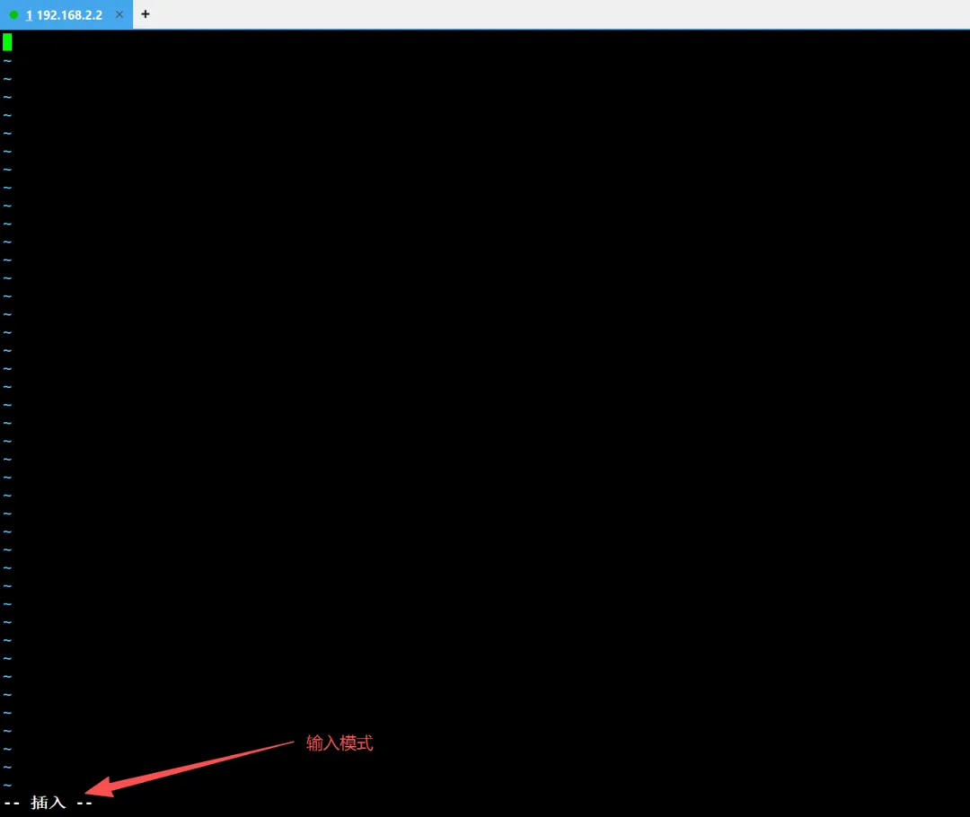 此状态下敲击键盘动作会被Vim识别为命令命令模式,而非输入字符,我们此时如果按下i,并不会输入一个字符,i此时被当作了一个命令。