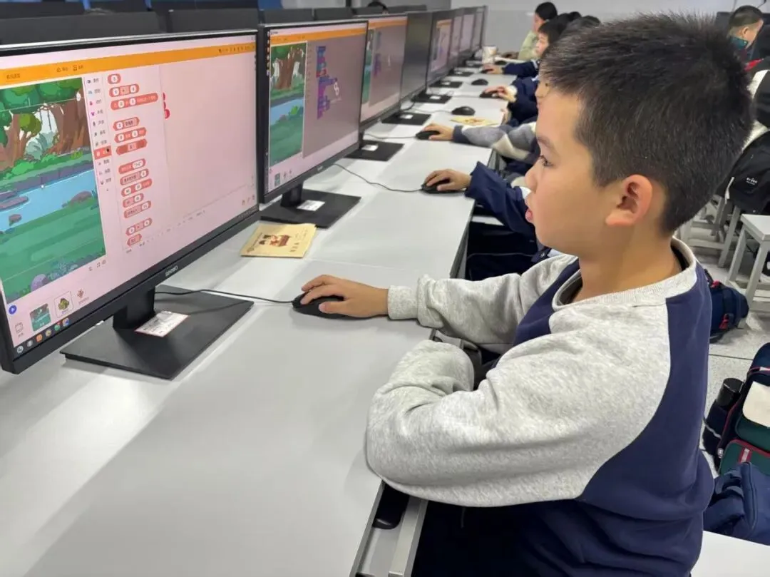 “编程就像解谜游戏,找到 bug 的时候特别有成就感!” 四年级学生李同学兴奋地说。在编程课堂上,孩子们不仅学习编程技能,更在潜移默化中提升逻辑思维、问题解决能力和专注力。教师通过“任务驱动”教学法,引导学生将复杂问题拆解为简单步骤,在调试程序的过程中培养耐心与抗挫折能力,这种“像工程师一样思考”的训练,让孩子们在实践中体会创新的乐趣,增强自信心与成就感。