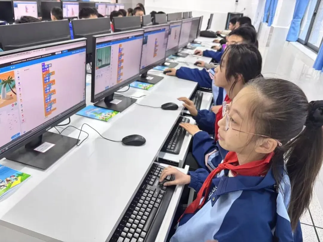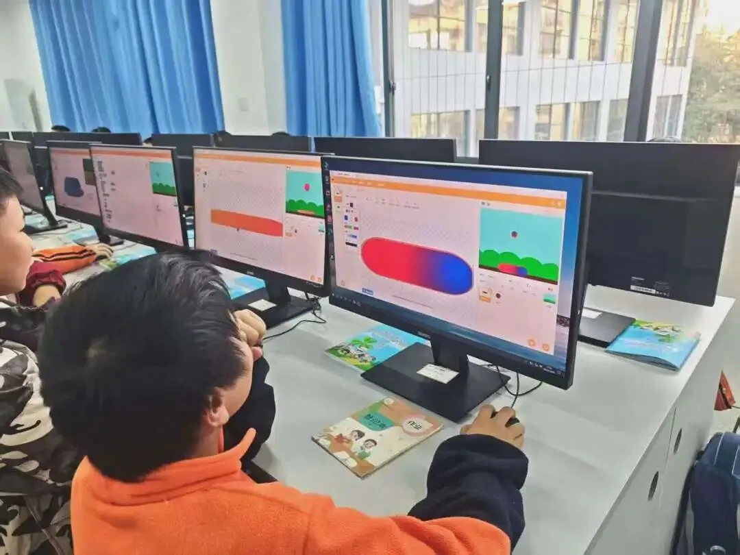 “点击积木模块,让小飞船绕过障碍物!”“调整指令顺序,实现动画角色对话”……桂林市凯风小学万福分校编程社团的课堂上,孩子们正专注地拖拽图形化编程模块,在趣味实践中探索数字世界的奥秘。学校配有2个电脑室共100余台电脑,为社团活动提供了充足的硬件支持。作为学校落实“双减”政策、丰富学生校园生活的重要举措,编程社团自开设以来既满足了学有余力学生的拓展需求,也为孩子们的未来竞争力打下坚实基础。