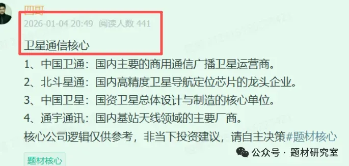 在星球内可以提前接收各种情报资讯与实时题材梳理,重点可以看每天和每周的题材核心,如1月4日的题材核心如下: