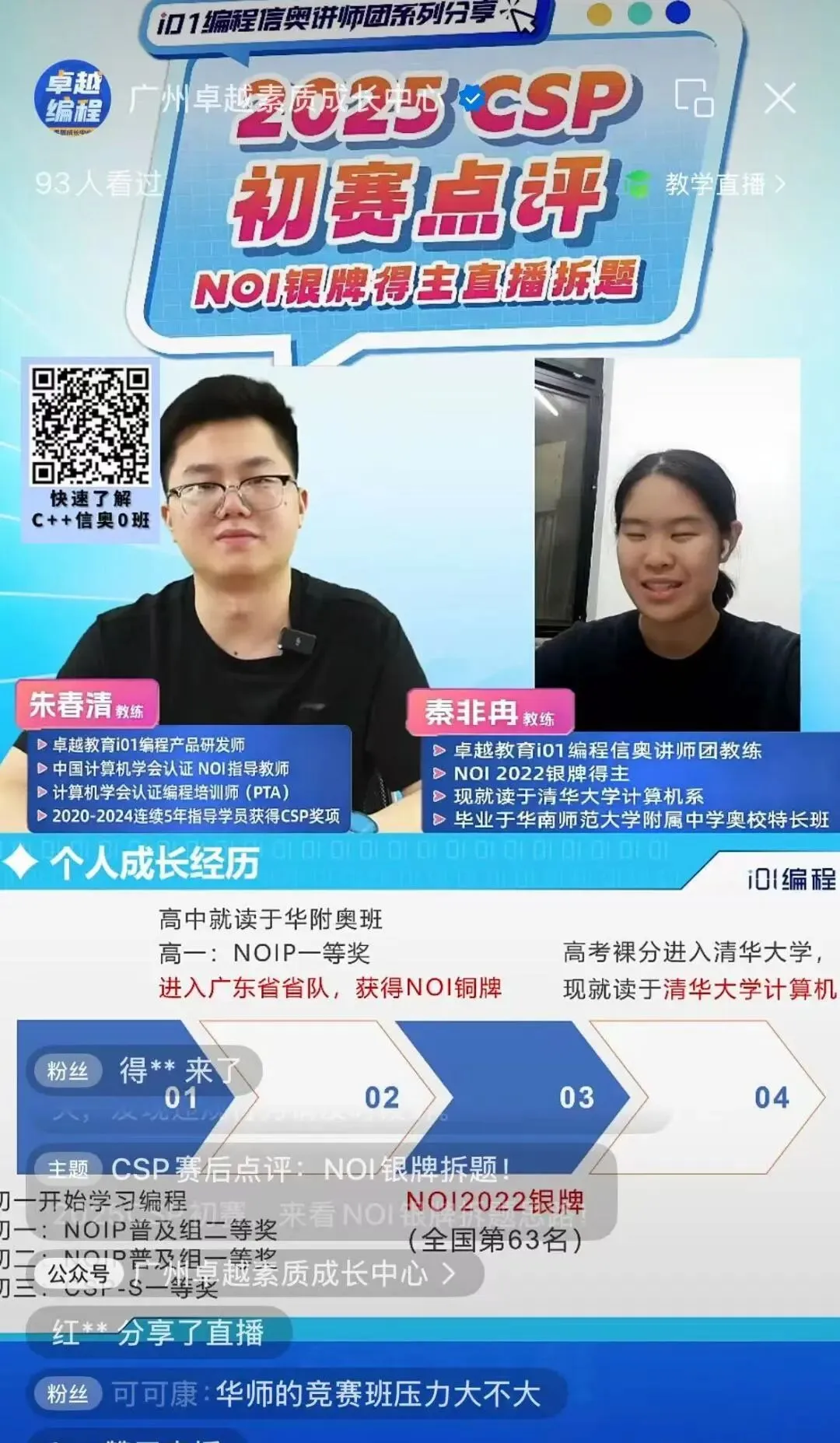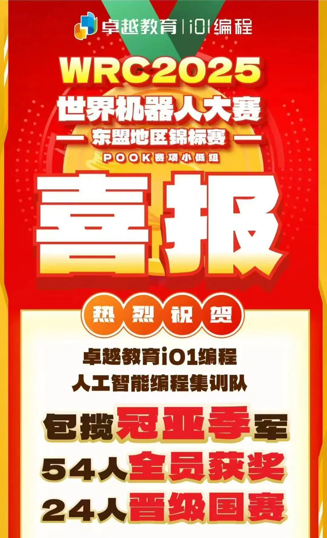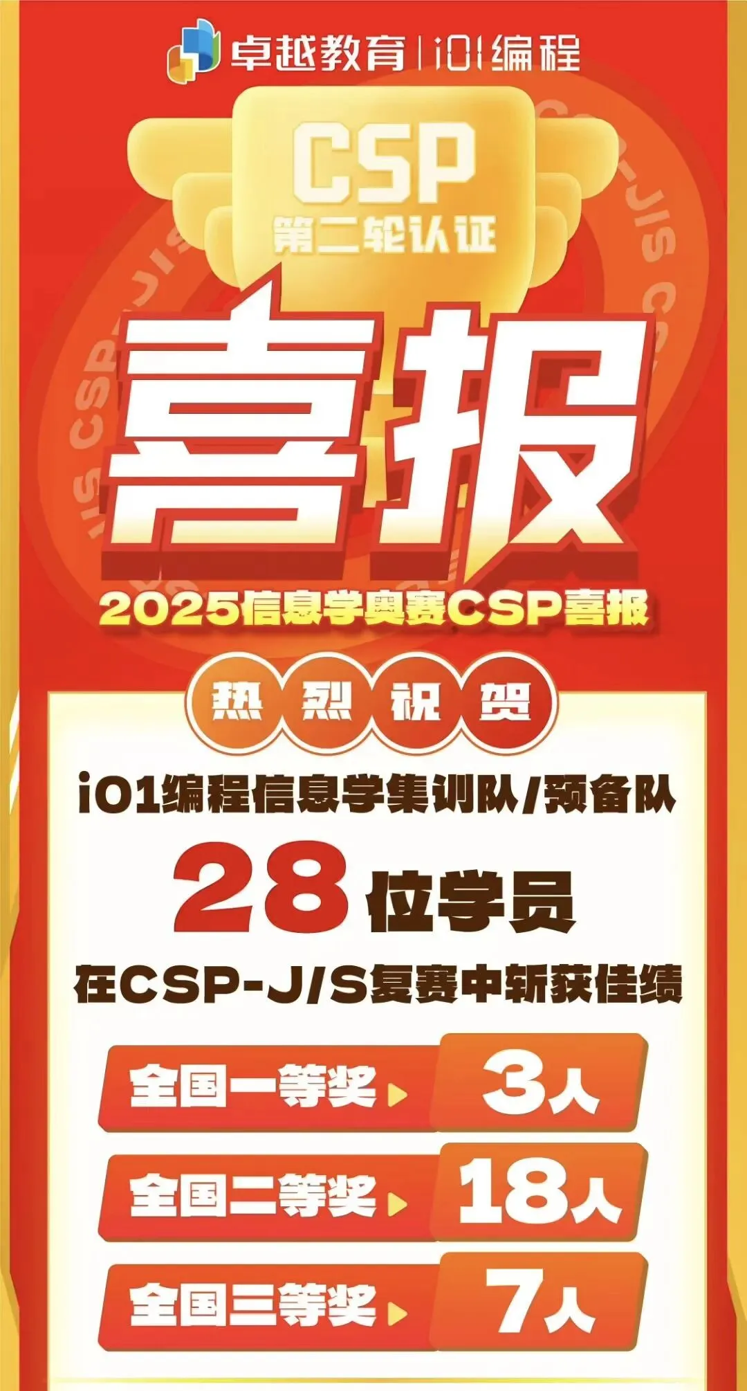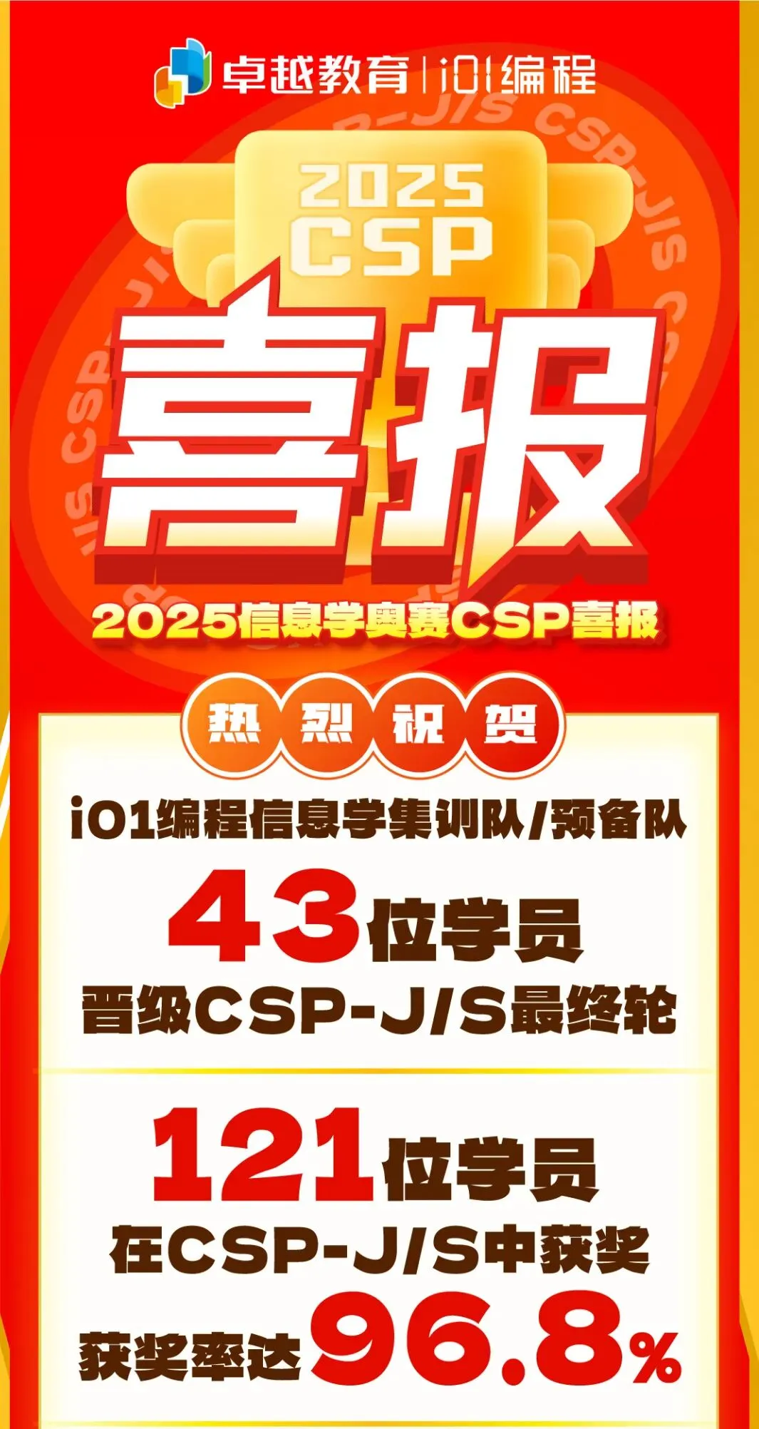 过去一年,i01编程学员在各大赛事中表现亮眼:白名单赛事获奖人数超过3000人,信奥CSP获奖率96.8%,双双创新高;人工智能编程集训队冲击高水平国际赛事,包揽所在组别冠亚季军!