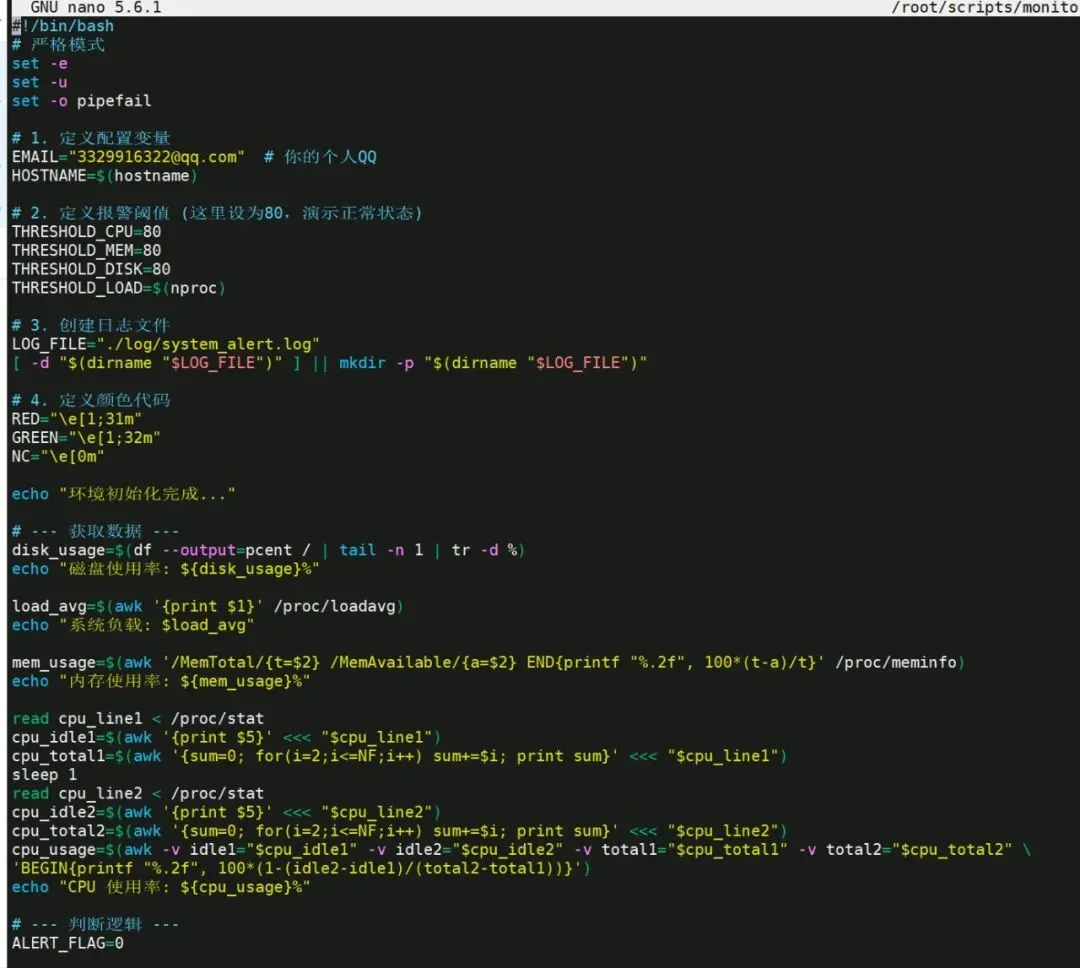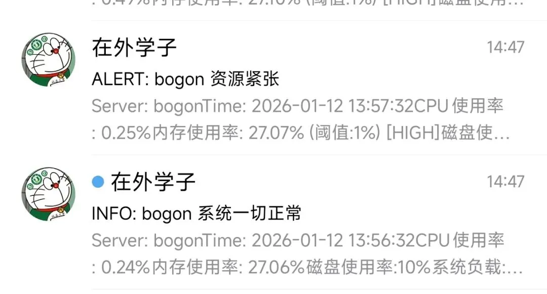 也算是成功弄了一个系统自动监控与报警功能,通过邮箱进行通知(其实是Gemini弄的哈哈哈哈)