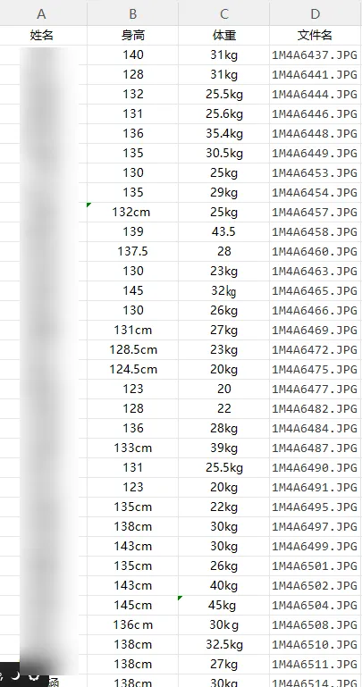 为了方便工具给更多人使用,我对excel的格式做了一些修改,增加了一列照片的文件名: