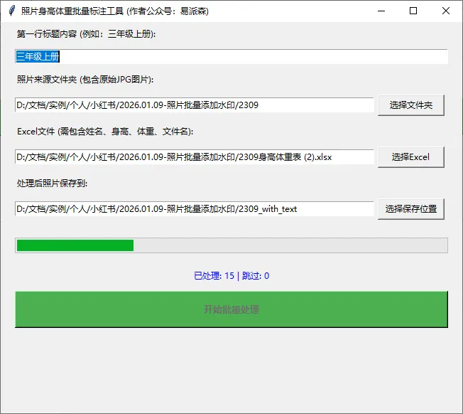 今天,我们将利用 Python 开发一个可视化工具。 它能够读取 Excel 里的学生信息,自动在对应的照片右下角绘制红色黑体字,并支持自定义标题、自动适配照片分辨率。