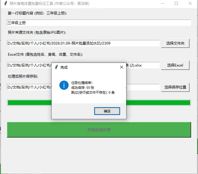 通过这个小项目,我们不仅学会了如何使用 Python 处理图像和 Excel,还接触到了简单的 GUI 开发和多线程优化。 原本需要大半天才能完成的体力活,现在只需点点鼠标,几分钟即可搞定。这正是 Python 自动化办公的魅力所在!