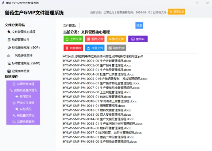 之前我也试过几个市面上的通用文件管理系统,用起来总觉得别扭,要么是分类不符合我们兽药GMP的工作习惯,要么是有一堆用不上的冗余功能,还要花时间去适应。所以我做这个系统的时候,全程都是按咱们日常工作的需求来的,不管是文件分类还是检查整改的模块,都是我们平时会用到的。而且还能根据自己公司的实际情况调整分类、加功能,不用被迫去适应系统,这种“量身定制”的感觉真的太舒服了!
