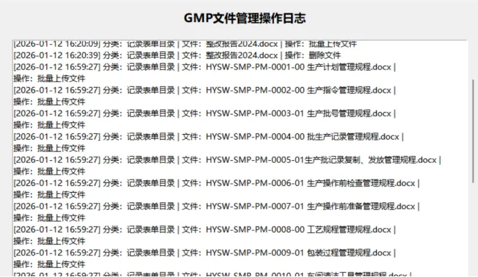 做GMP管理这么久,最担心的就是合规出问题。所以我开发的时候,把合规需求刻在脑子里了——所有文件操作都会自动记日志,检查整改的资料也能集中归档,每一步操作都规范可控。有了这个系统,以后不管是日常检查还是突发飞检,都不用再手忙脚乱地凑资料、补记录了,心里特别有底。对我们做GMP的来说,这种踏实感真的很重要!