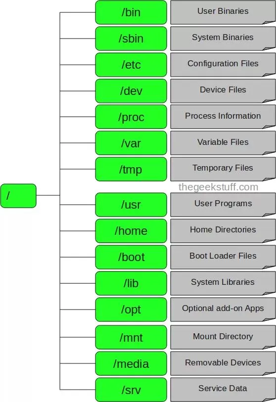 根据以上原因,FHS认为根目录(/)下应该包含如下子目录:
