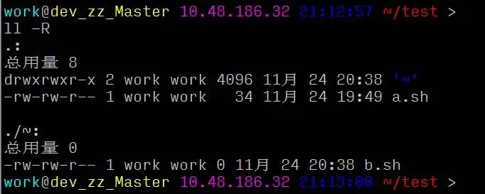 drwxrwxr-x 2 work work 4096 11月 24 18:57 '~'