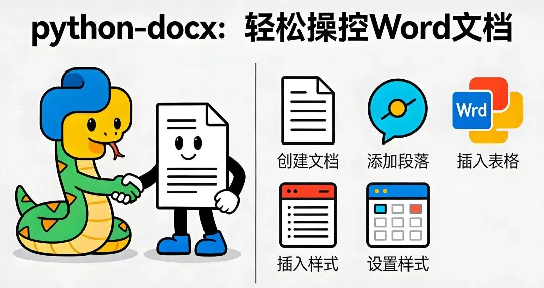 python-docx是一款纯Python实现的第三方库,专门用于创建和修改Microsoft Word的.docx格式文档。该库无需依赖 Microsoft Word软件即可运行,具备优秀的跨平台特性,可在Windows、Mac、Linux等系统上使用。需要注意的是,python-docx仅兼容.docx 格式(对应 Word 2007 及以上版本),不支持旧版的.doc 格式文件。.docx是基于XML的开放压缩格式,而.doc是二进制私有格式,前者体积更小、兼容性更优。