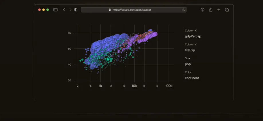 换句话说:Solara 把前端那一部分“繁琐的 JavaScript 工程”尽量隐藏起来,让数据工程师/科学家用熟悉的 Python 就能做出结构化、可维护的交互应用。