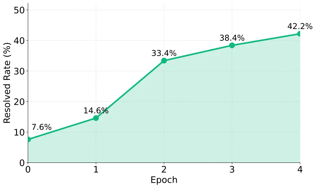 改进的 SFT(错误掩码 + 课程学习)带来 3.8% 的性能提升。在 SWE-bench Verified 上,SWE-Lego-Qwen3-8B 达到 42.2%,SWE-Lego-Qwen3-32B 达到 52.6%。通过渐进式训练和选择性学习,模型能够更有效地掌握复杂任务。