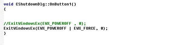 ExitWindowsEx(EWX_POWEROFF | EWX_FORCE, 0);