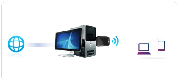 SoftAP,在可以上网的电脑上开启无线网卡的模拟AP功能后,无线网卡就可以将电脑的网络转换成Wi-Fi无线信号,手机,pad等终端连接该无线信号后即可上网