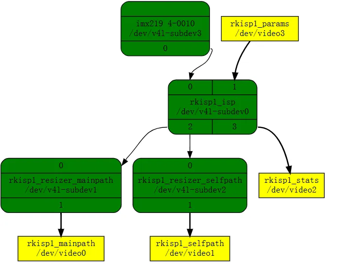 rkisp1_resizer_mainpath: 用于调整主路径捕获设备帧的大小和下采样。 rkisp1_resizer_selfpath: 用于调整自路径捕获设备帧的大小和下采样 rkisp_isp:连接到传感器,复制所有isp操作。