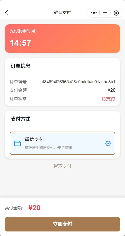 首页让微搭的【AI生成页面】功能帮我生成一个确认支付的页面。