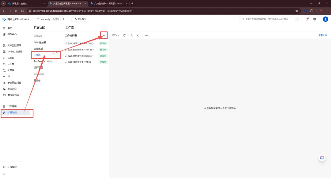 那么第一步,我们就需要新建工作流,点击【扩展功能-工作流-新增】