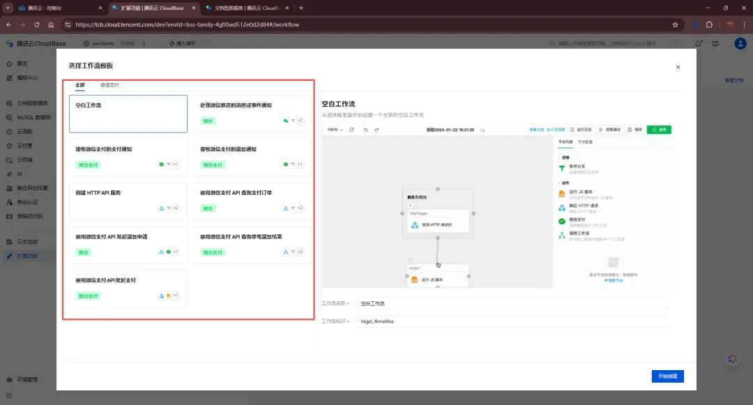 新增的时候,你可以看到很多官方提供的工作流模板,主要是微信支付的。