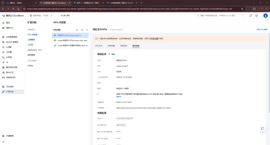 如果日后需要修改,也可以通过【拓展功能-APIs连接器-微信支付APIs-基本信息】进行修改。
