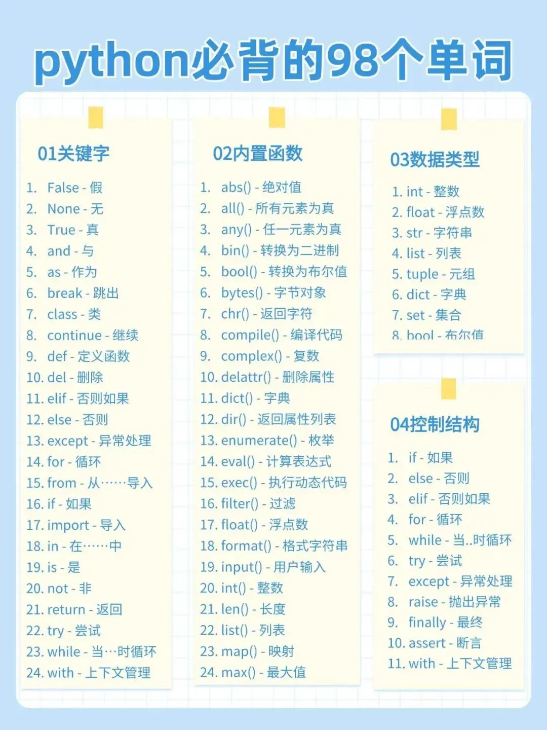 >Python 零基础入门必备 98 个核心词汇|3 天背诵计划(自学专用)