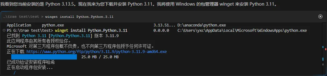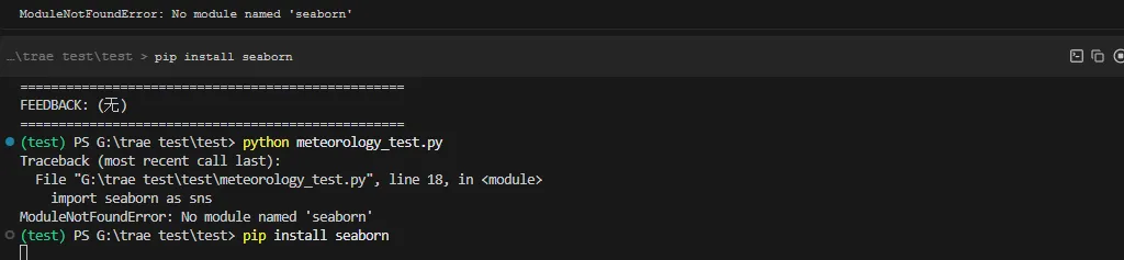 在这个过程中AI发现还有seaborn库没有安装,又进行了一次安装