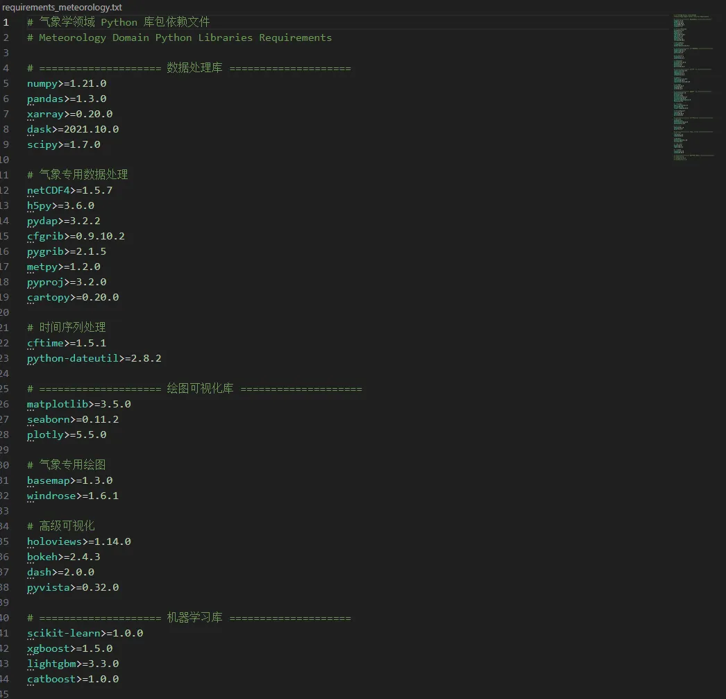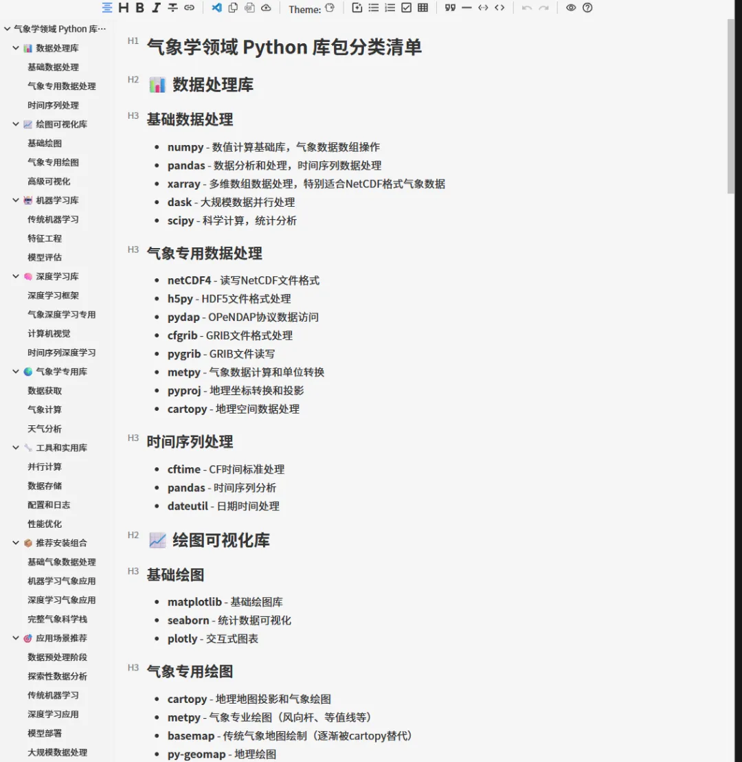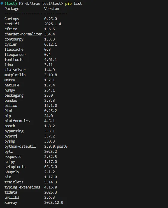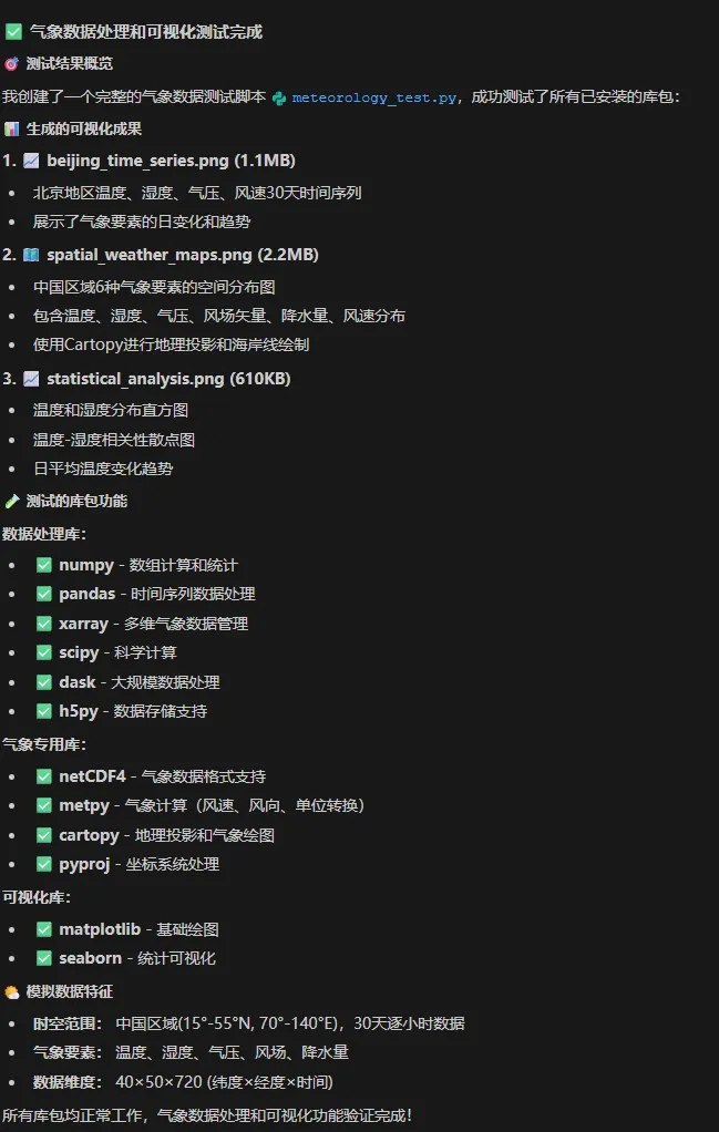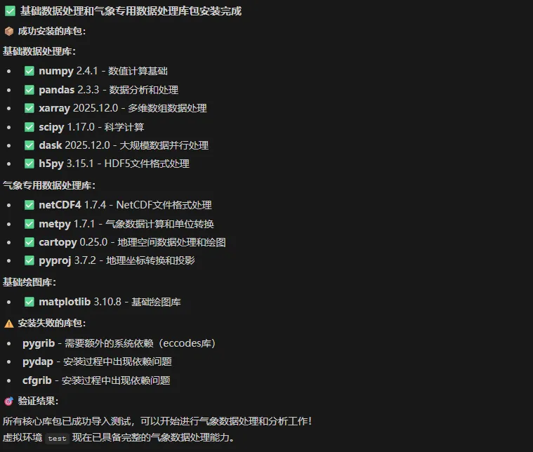 下面开始在test环境安装库包,我先让AI帮我列出目前关于气象领域的相关库包