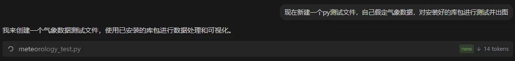 然后我输入提示词,让AI假定数据并测试安装好的库