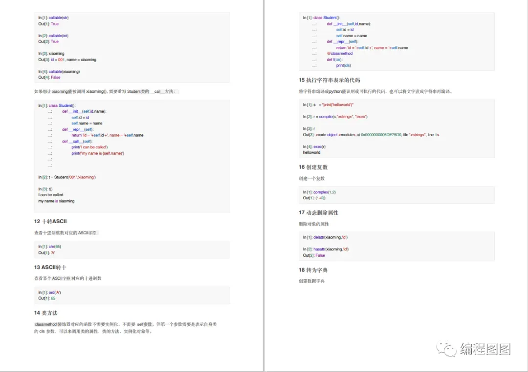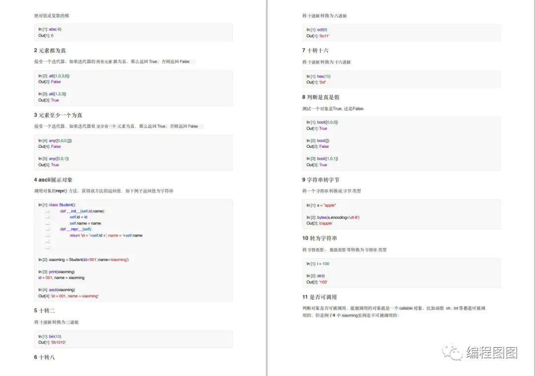 高清PDF版,所有代码均可复制,是Python学习路上练习的最佳参考资料,快快收藏起来吧。内容预览: