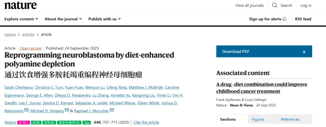 我想在pubmed检索“基于多胺代谢调控的饮食-药物联合策略诱导神经母细胞瘤分化的关键机制与转化探索”相关的文献,请给出检索词。