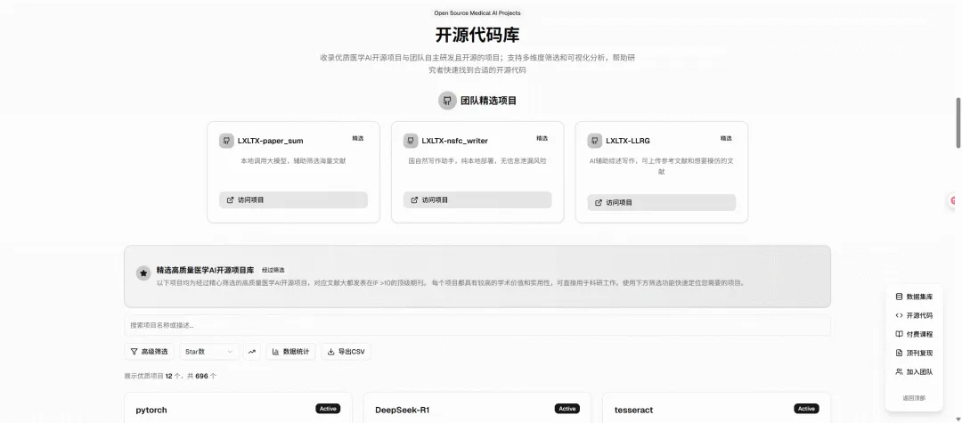 980+医学图像公开数据集查询系统,680+医工交叉开源代码仓库,最新的医学AI前沿论坛回放等你来探索!